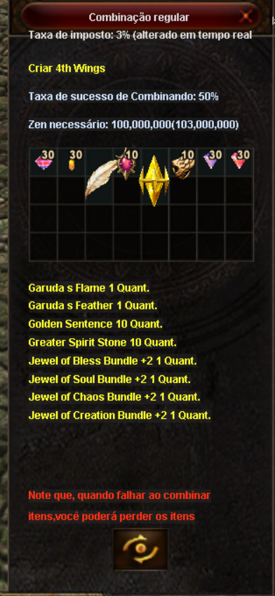 Em caso de sucesso, o jogador receberá UMA ASA LEVEL 4,