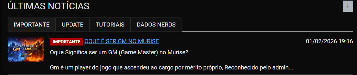 Novo tópico importante adicionado: OQUE É SER GM NO MURISE