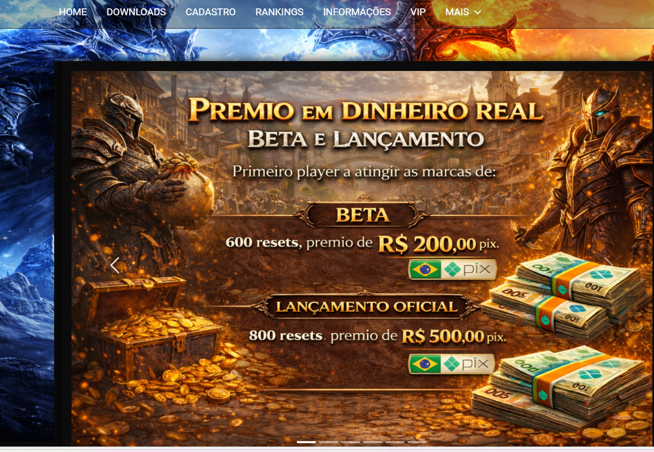 Adicionado novo slide de premios em dinheiro real pix beta e lançamento: