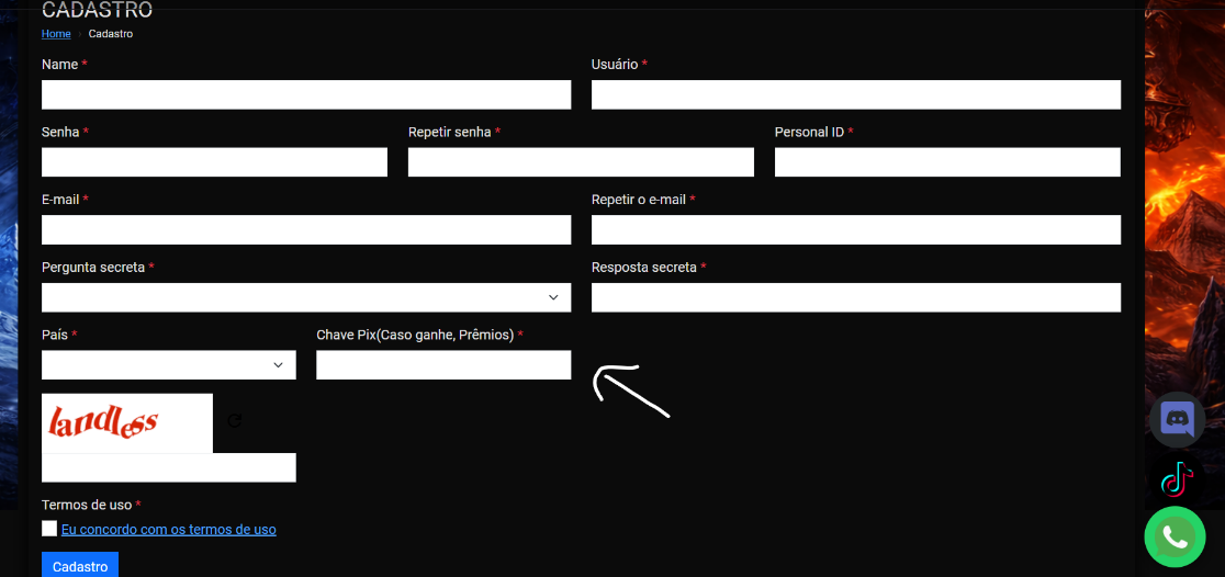Adicionado Necessidade de colocar chave pix ao cadastrar: