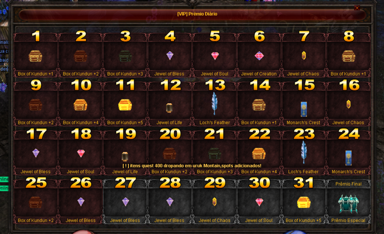 Edição de npc: Dialogos do npc quest 400 foram alterados para indicar o mapa uruk montain como local de farm dos itens da quest